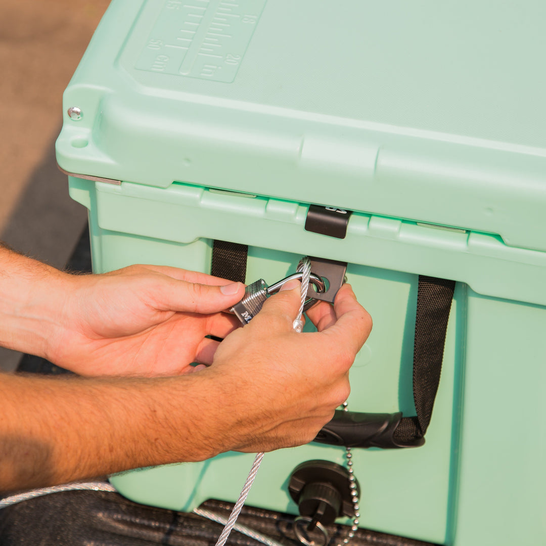 The Driftsun Security Lock Plate is a must have accessory in your ice chest arsonal. Featuring a heavy duty ⅛” gauge grade plate with a solid black finish and seamless rounded edges to keep your cooler safe from scarring and scratches. This lock plate fits wire chains up to ½” in diameter. Constructed with marine grade materials to ensure your plate will never rust or corrode under any conditions. The Driftsun Lock Plate will work with any Driftsun Ice Chest as well as most rotomolded coolers on the market!