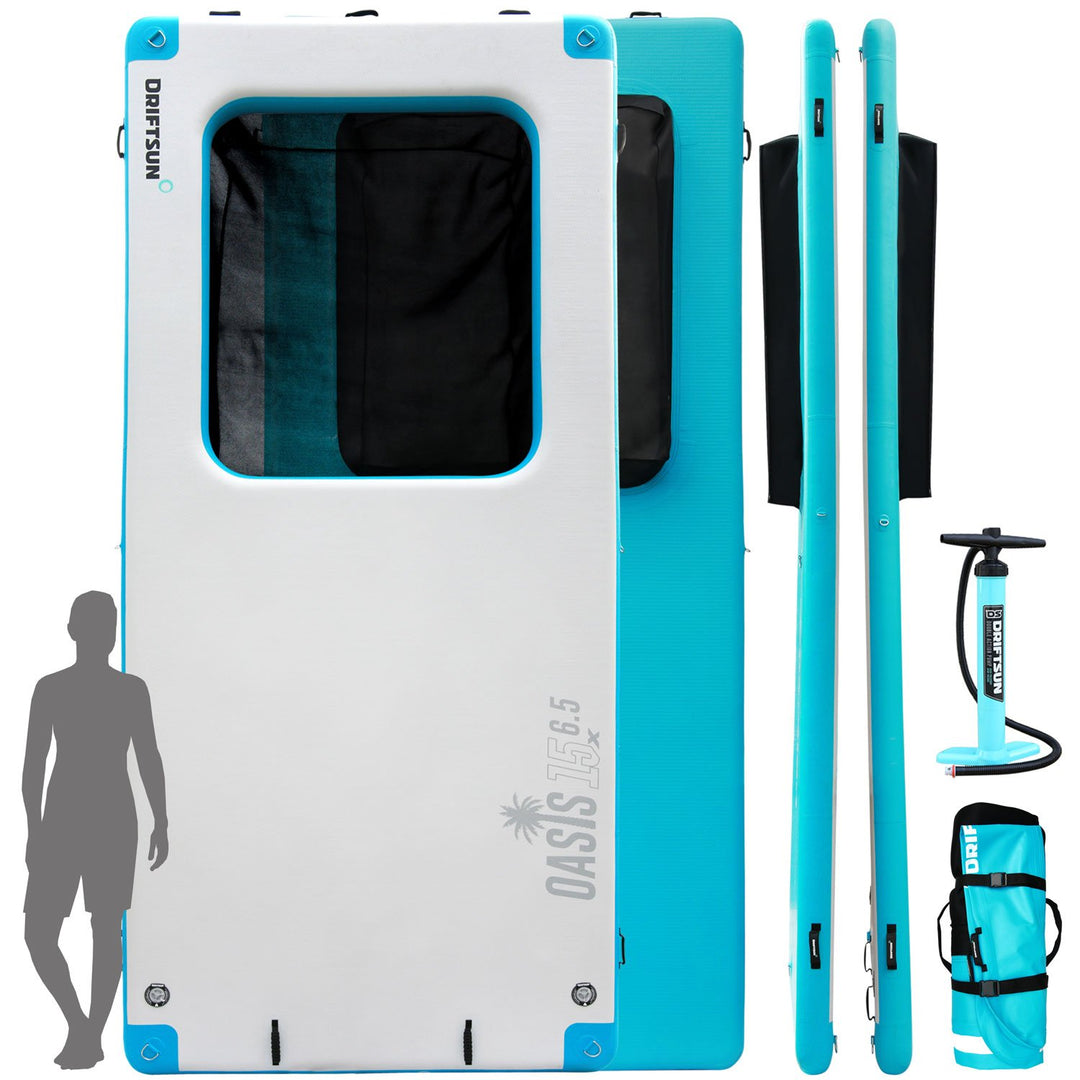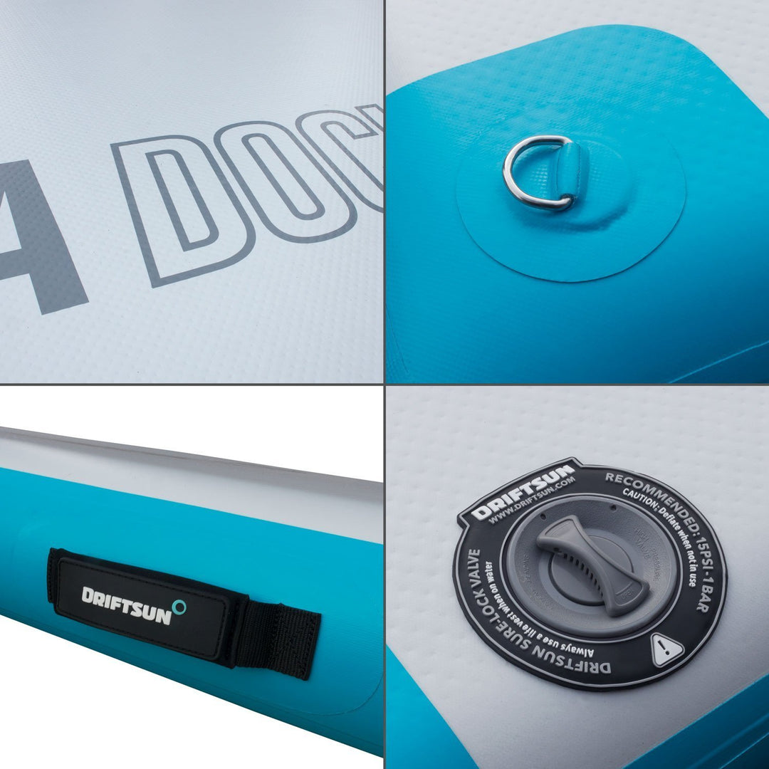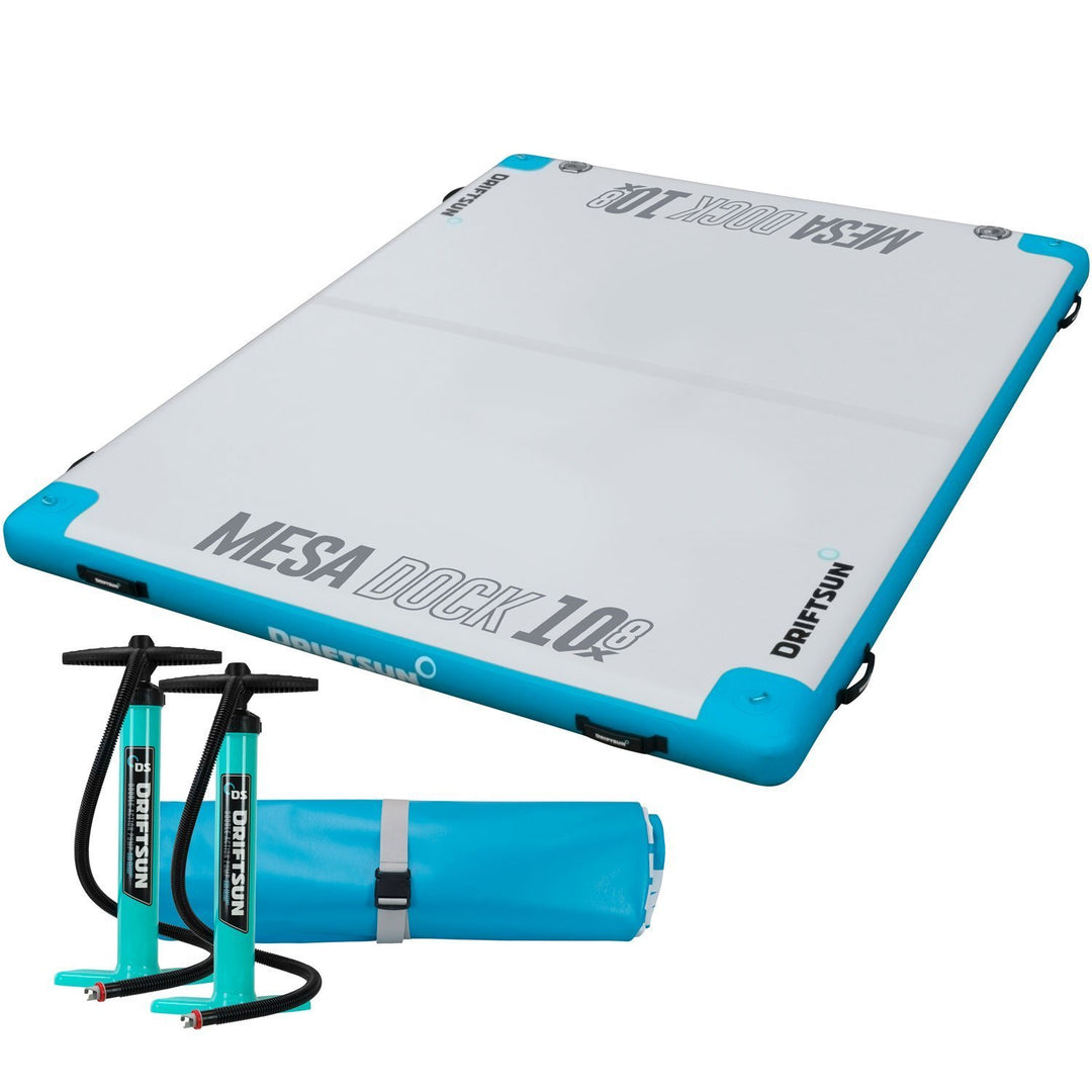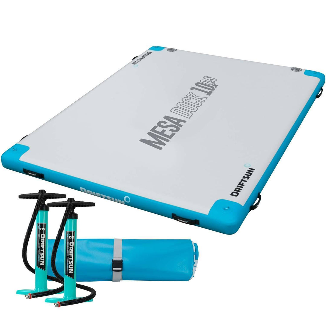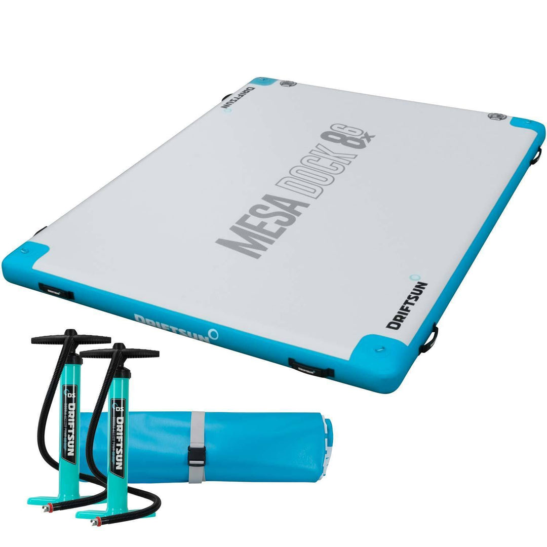 This dock is a must for water enthusiasts of all kinds! Use it as a stable platform to clean and work on your boat from on the water. Practice yoga on the lake or lay out and catch a tan. Bring out the lounge chairs, cooler and watch a sunset from the water. Kids love to jump on and off the Mesa Dock while swimming. With so many uses the Driftsun Mesa Swim Deck is sure to be inflated all summer long. Constructed from military-grade PVC using MLS drop stitch technology. Never worry about the fun ending from dings, damage or punctures with this extremely durable inflatable swim platform.