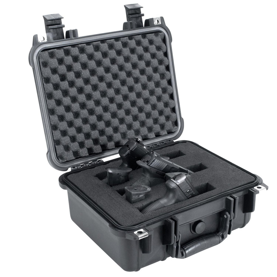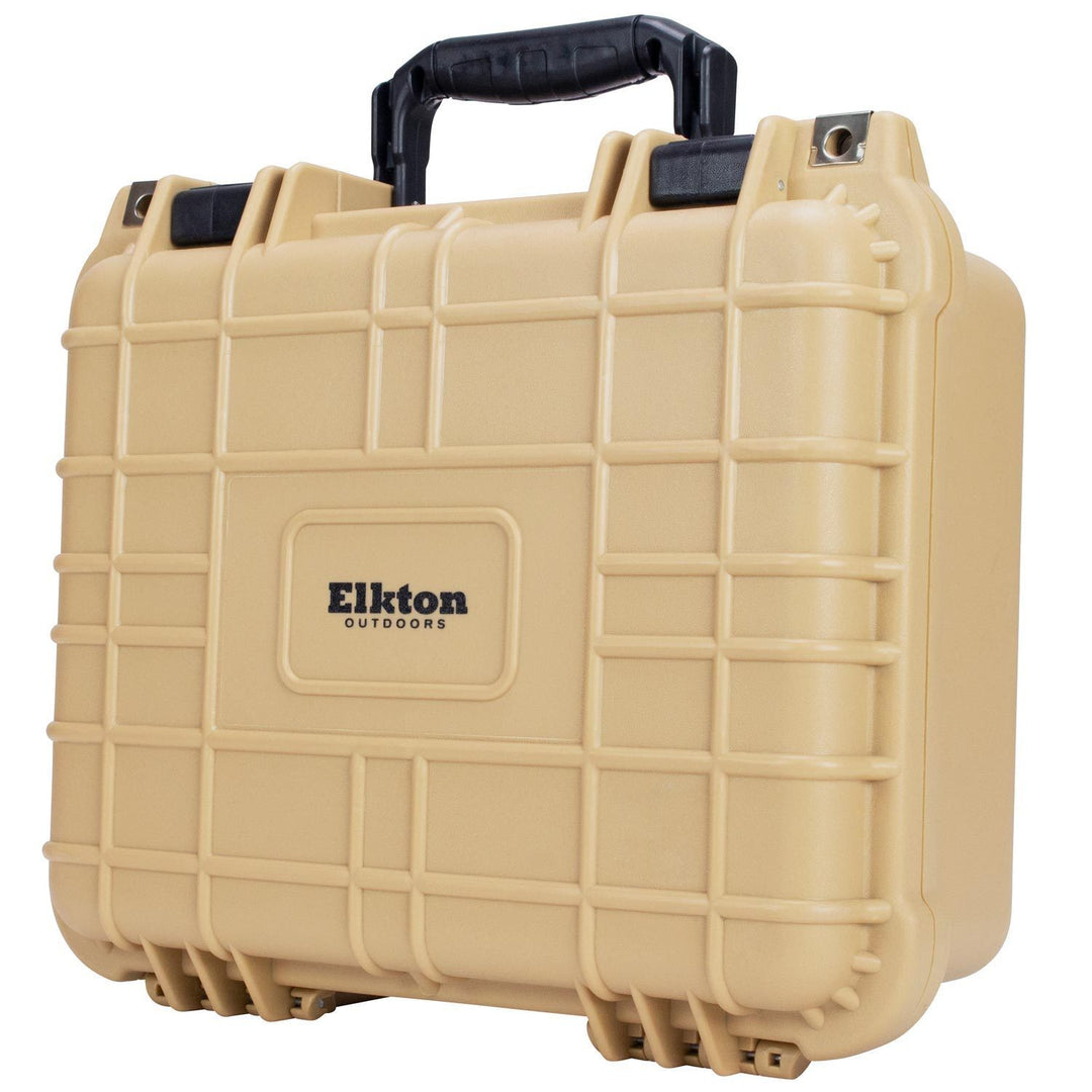 Elkton Outdoors is proud to introduce the highest quality hard gun case available! We know the importance of functionality and safety when it comes to transporting and storing firearms. Our gun cases include a fully customizable foam interior so you can arrange your gun case to your ideal specifications. We have also ensured this case is nearly indestructible by making it waterproof up to 3 feet and crushproof up to 2,000lbs. This travel gun case is ideal for trips because we have integrated an automatic pressure adjustment valve allowing the internal pressure of your case remains the same during changes in elevation. Our cases include reinforced plated lock holes to ensure your firearms will remain safe while not in use. Each hard gun case was developed to the highest safety and quality standards so you know when you order an Elkton Outdoors gun case you are buying the best!