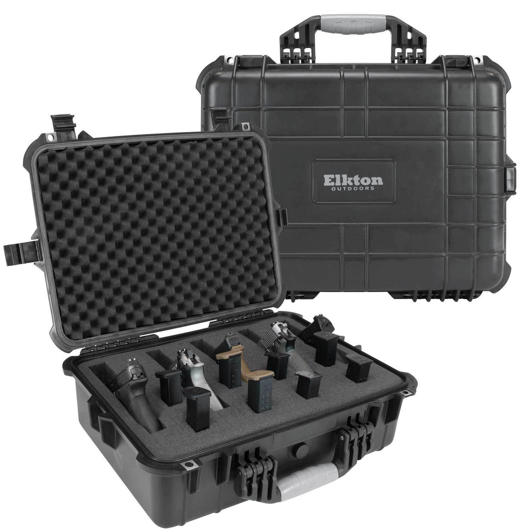 Elkton Outdoors is proud to introduce the highest quality hard gun case available! We know the importance of functionality and safety when it comes to transporting and storing firearms. Our gun cases include a fully customizable multi level foam interior so you can arrange your gun case to your ideal specifications. We have also ensured this case is nearly indestructible by making it waterproof up to 3 feet and crushproof up to 2,000lbs. This travel gun case is ideal for trips because we have integrated an automatic pressure adjustment valve allowing the internal pressure of your case remains the same during changes in elevation. Our cases include reinforced plated lock holes to ensure your firearms will remain safe while not in use. Each hard gun case was developed to the highest safety and quality standards so you know when you order an Elkton Outdoors gun case you are buying the best!