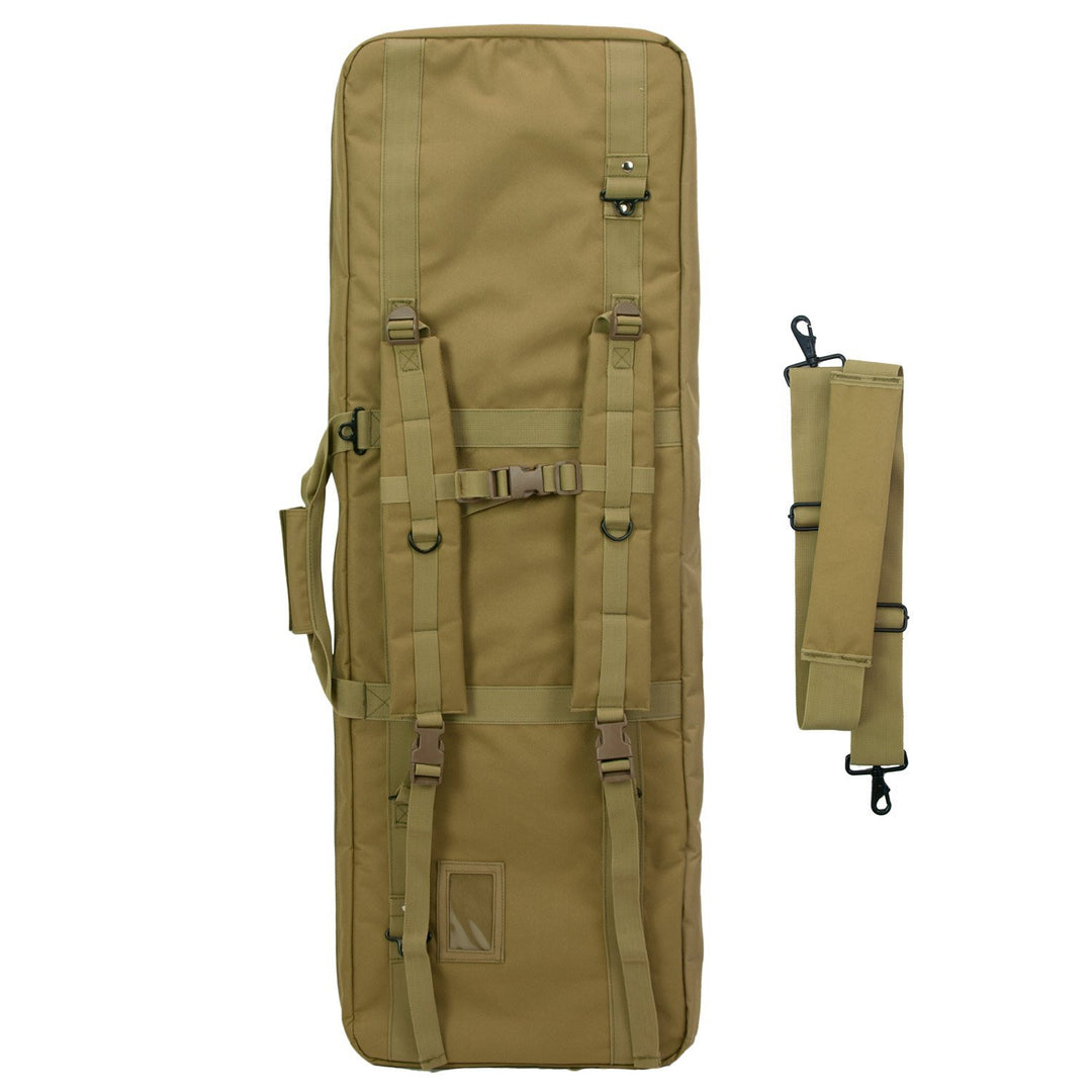 The Elkton Outdoor Gun Bag Shooting Mat delivers the perfect combination of functionality and durability for those looking to spend the day shooting but do not want to carry around excessive bulky equipment. Our shooting bag securely fits 3 full size rifles along with all the magazines and accessories you will need for shooting. The dimensions of this shooting range bag measure in at 42x3x15 in. On top of being a rugged and durable tactical gun bag it also folds out into a padded shooting mat, eliminating the need to bring a gun bag and separate shooting mat with you. On the exterior of this bag you will find two additional storage pockets that will house all the shooting accessories you will need as well as a molle webbing exterior on both of the pockets. This shooting bag is truly the most portable on the market because it features a carry handle, shoulder sling and backpack straps, we took the extra time to design our bags this way so it can be used in a multitude of ways and save you from having to purchase extra shooting equipment.