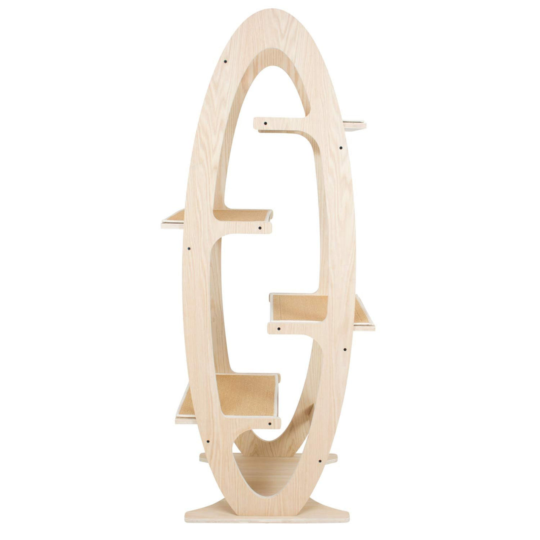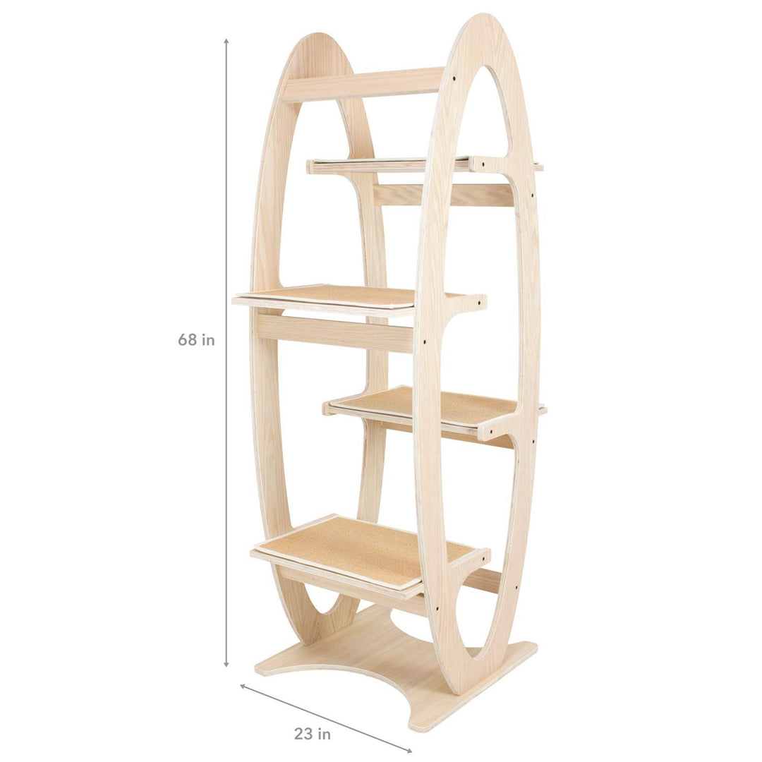 The Apex Cat Tree Tower offers a modern touch to any home that your cat will love. With this wood cat tower your cat gets the opportunity to explore and exercise with the easy to navigate, multi level, carpeted cat steps. Each extra wide platform was designed so your cat can lounge and play without the discomfort of being confined to narrow spaces. The unfinished wood helps you to tap into your creative side by allowing you to paint, stain and customize your modern cat tree in a way that fits your home decor and style or you can choose to leave the unstained wood cat tree as is for a natural modern look! We build our cat towers with only premium wood and top quality hardware so you know that when you purchase an Apex Cat Tree from FrontPet you are getting only the highest quality product available!