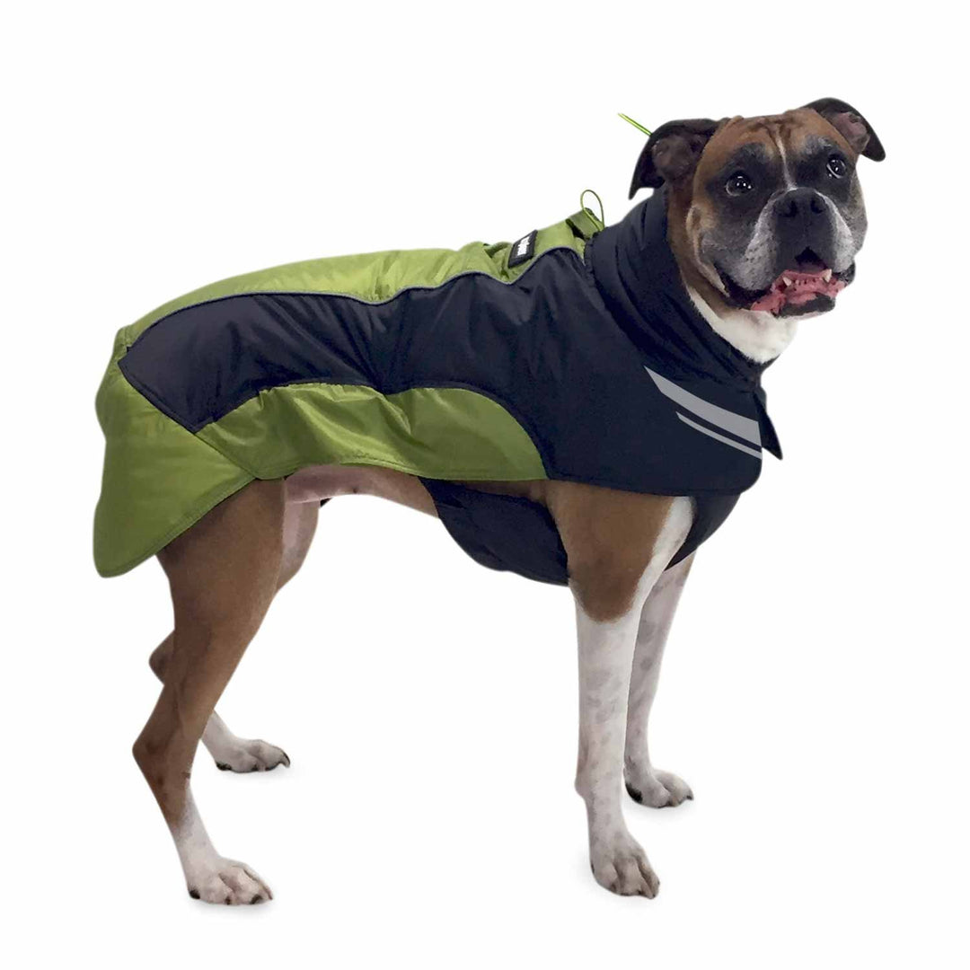 We at FrontPet know that you want to bring your dog on every adventure you embark on and at times the weather can prevent that from happening safely. That is why we have designed the Explorer by FrontPet Soft Shell Dog Jacket to help keep dogs warm in the harshest climates. This sleek dog winter coat is made with top quality materials that will fit your dog comfortably while also keeping your pup warm and dry. Form fitting sleeves on the dog winter coat provides more coverage against rain, snow, wind and the cold without causing your dog any discomfort. The waterproof dog coat closes with a side zipper which makes it easy to take on and off while also keeping your dog warmer compared to other fastening methods. This waterproof dog coat has reflective strips that add another level of protection by illuminating your dog in areas with low visibility. It works as a dog winter coat, a waterproof dog coat, and a winter dog jacket.