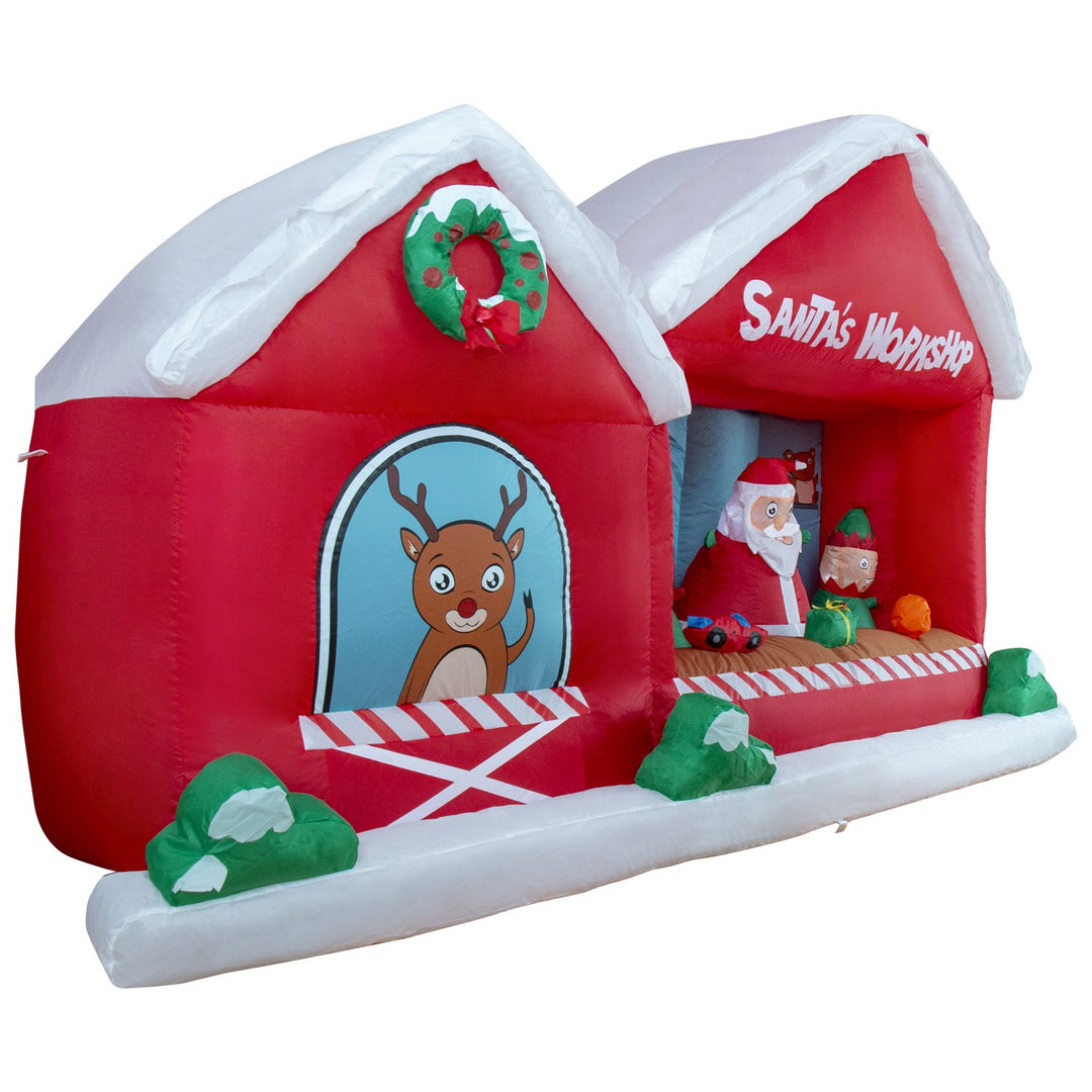 Treat your family, friends, and neighbors to a delightful Christmas display when you get the Holidayana 8 ft wide Inflatable Santa Workshop Decoration!