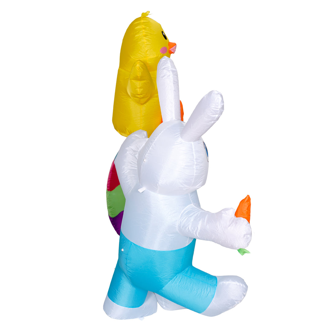 This 6ft Tall Happy Easter Sign with Easter Bunny Eggs and Chick Inflatable Outdoor Decor will make your spring holiday season even more vibrant! The phrase “Happy Easter” Is lit up bright and is accompanied by the Easter Bunny to the left, Easter eggs to the right and an adorable chick sitting on top. With the well-placed and extra bright built-in LED bulbs, it’s a showstopper at night to make for a stunning spring display!