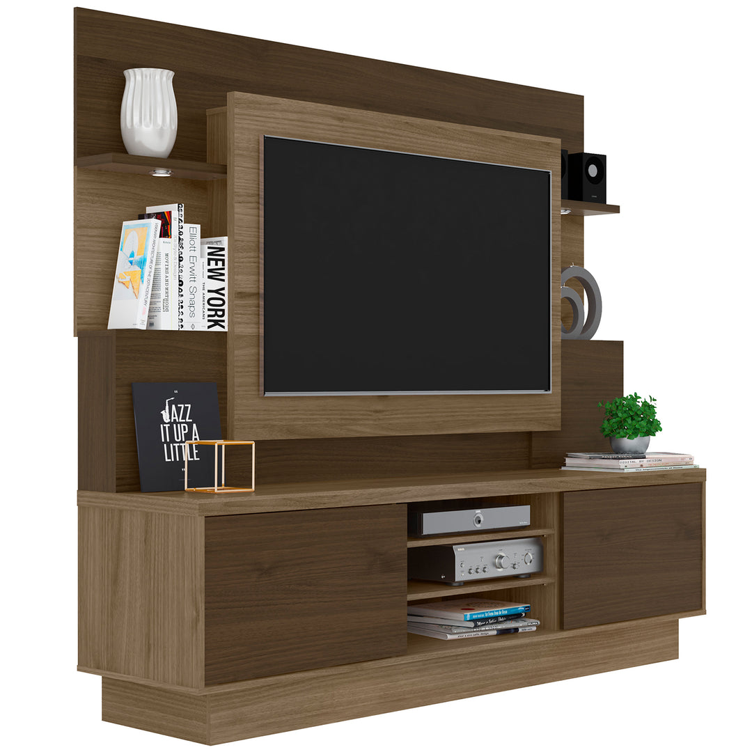 Combining contemporary design and functional craftsmanship, the Home Aron Lighted Media Center is every entertainment aficionado’s dream. Measuring 78.75″ in Width, 71″ in Height, and 19.25″ inches in depth, it can hold a 55-inch TV, speakers, and other media components. It has 2 sliding doors on the lower panel and a total of 8 shelves where you can display your DVD collection, movie memorabilia, or room decors.
