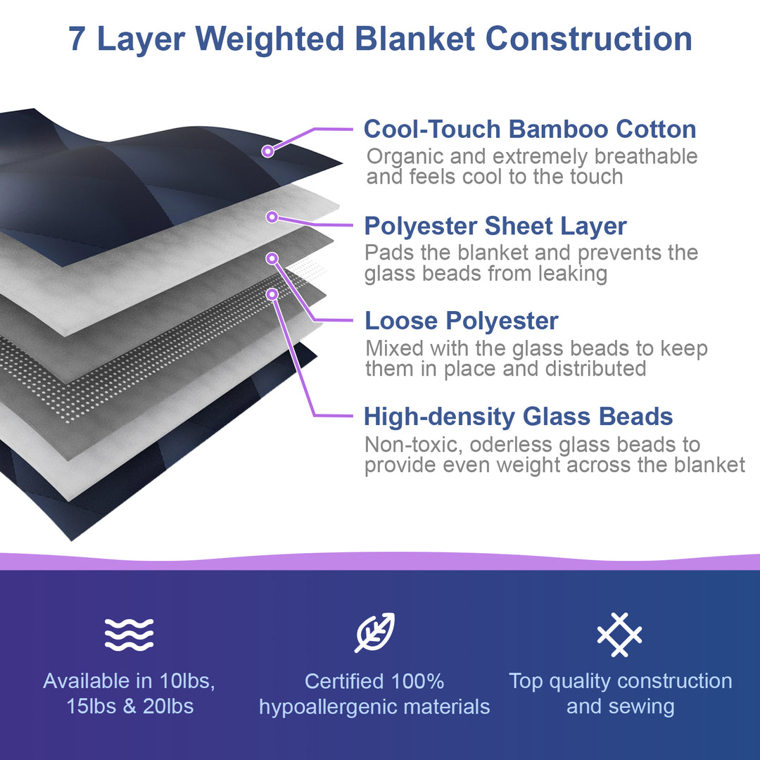 Filled with non-toxic, hypoallergenic, micro glass beads, this weighted blanket will feel like a comforting hug to help you wind down and fall asleep faster.