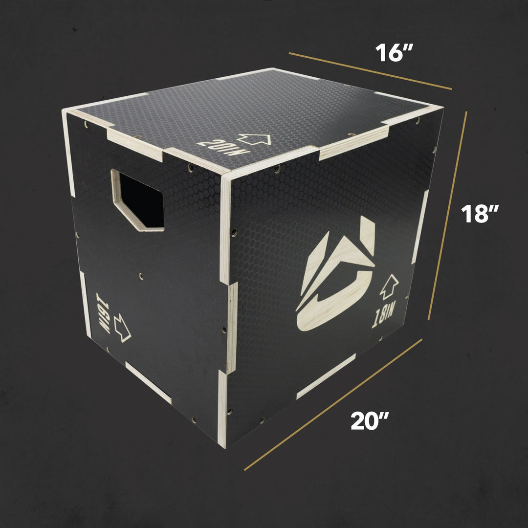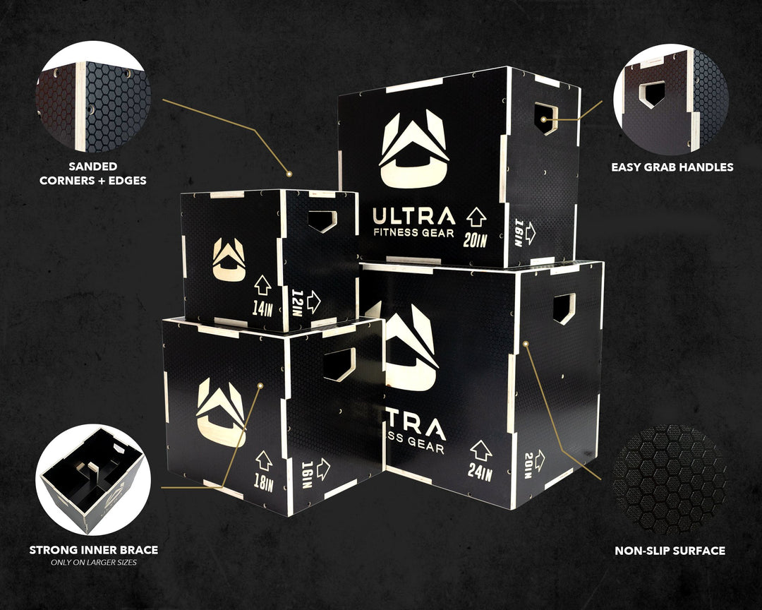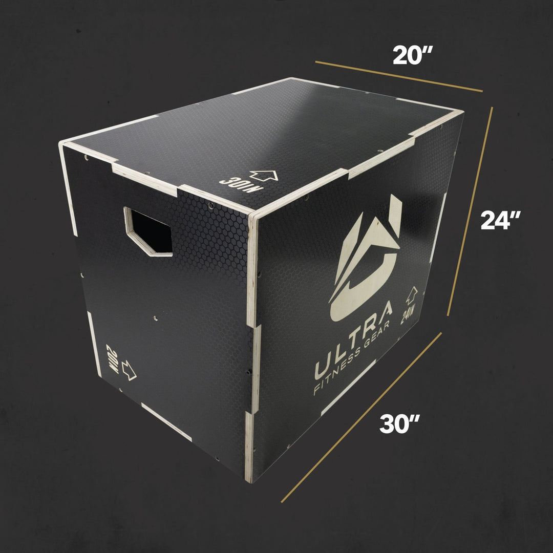 - Purpose built for Plyometric Exercise.The Ultra Fitness Gear Garage Wood Plyo Box features 3 different height options for training flexibility: can be used at 20, 24, and 30 inch heights. Develop strength through your jump training, dips, step-ups, and box push-ups