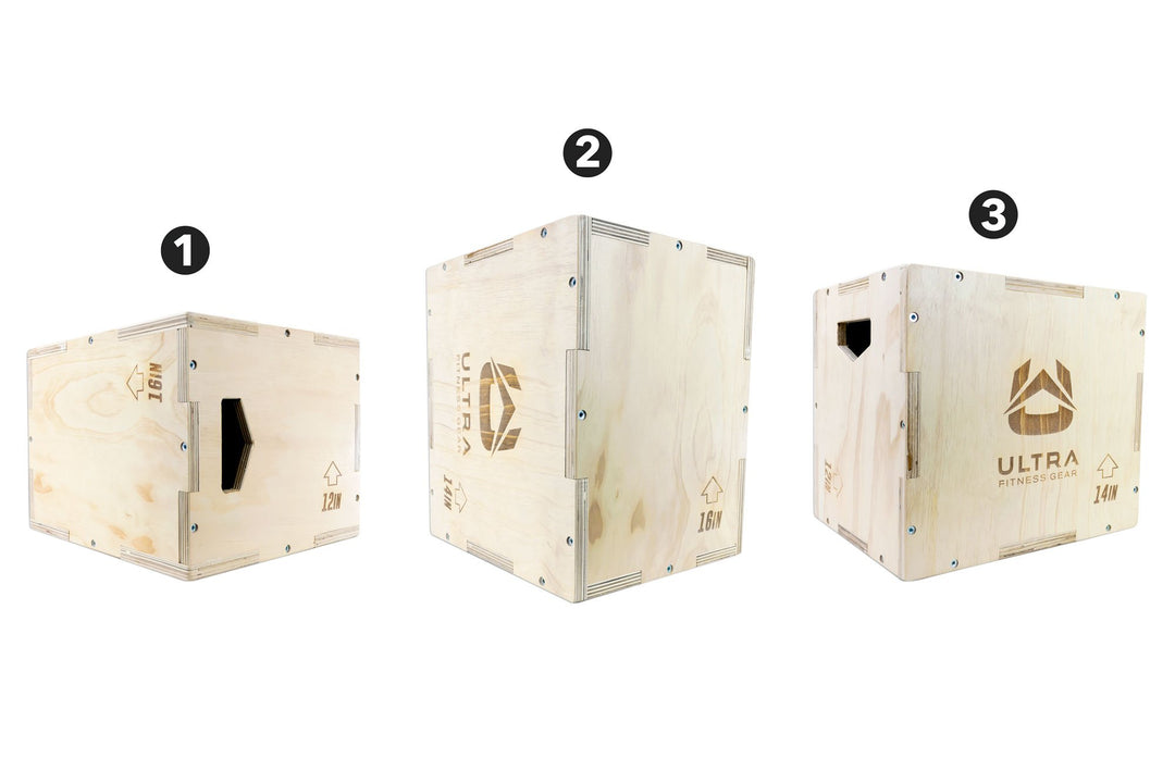 - Purpose built for Plyometric Exercise.The Ultra Fitness Gear Garage Wood Plyo Box features 3 different height options for training flexibility: can be used at 20, 24, and 30 inch heights. Develop strength through your jump training, dips, step-ups, and box push-ups