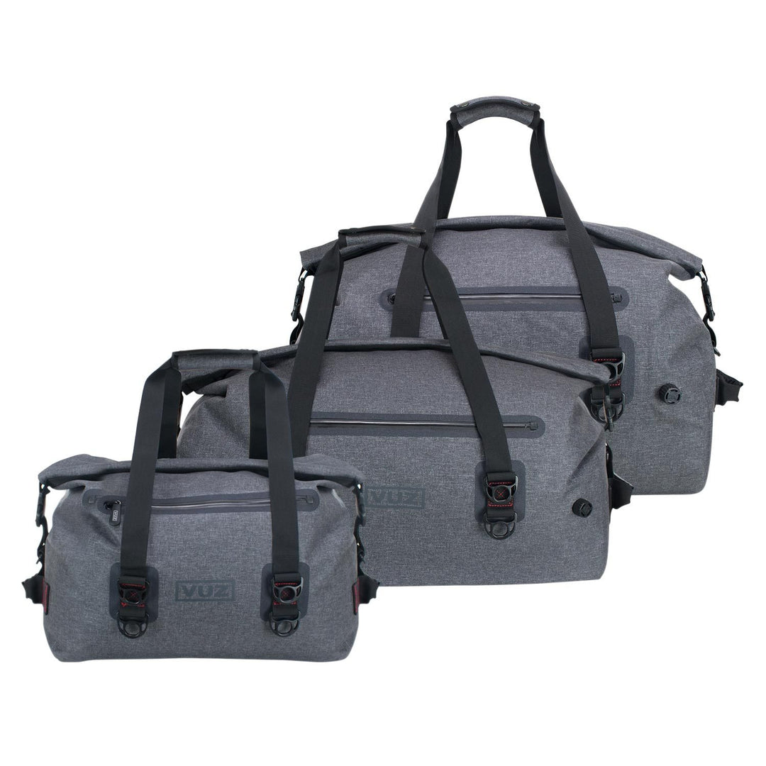 Our premium duffle combines the same ruggedness of our original duffle with added elements of functionality and style. Offered in three convenient stackable sizes, 30L – 40L – 55L, this duffle is the perfect travel companion whether it’s an overnight rendezvous in the city or trip down to Baja. As with all VUZ luggage, waterproof and durability were our main focus in development. The TPU material and roll top design keep the bag waterproof while bringing improvements to strength and weight and an overall fresh look on the style of adventure motorcycle luggage.