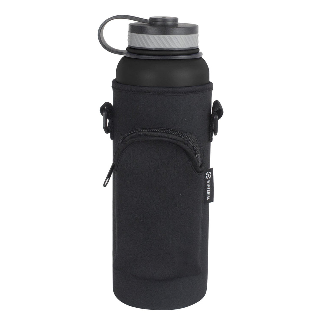 Looking to take your Winterial 40oz water bottle on an adventure? Well now you can with the Winterial neoprene sleeve and shoulder strap. This sleeve allows you to easily slide your water bottle in and securely zip the bottle. When you’re on the go, this water bottle sleeve is the perfect way to carry your bottle. Not only is your bottle easier to carry and use now, this sleeve will protect against dents, scratches, dings, and breaks. The front pocket makes it easy to store small accessories, like a phone, wallet or keys. Take this camping, running, biking or any activity on the go with you Winterial water bottle sleeve.