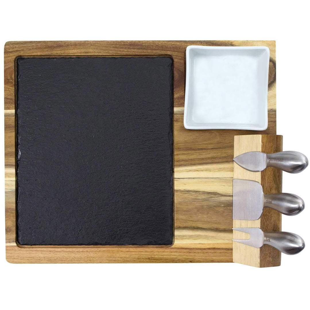 - Sustainably produced natural acacia wood with a slate cheese board inlay